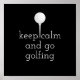 This golf quote poster is for golfers in black and white with text keep calm and go golfing for wall art decor in home or office.