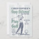 Get your party in swing with this retro golf themed retirement party invite. Features fun golf quotes to get the party started! Invite your family and friends to honour someone that is retiring from work, volunteering or other activity. Features retro style golfer teeing off a golf ball.