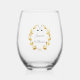 This stylish wine glass shows a custom name sample with a gold winner's laurel wreath and golf club's print.
