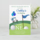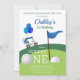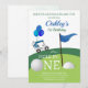 Celebrate your little ones milestone with this charming golf themed first birthday invitation. Featuring a playful golf cart, balloons, and course details, this design uses fun golf terminology to set the tone for a day of joy. Perfect for golf-loving families, it combines sporty style with festive flair to make your childs party unforgettable. Customize with your event details and impress guests with a unique, hole-in-one celebration.