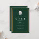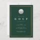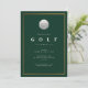 Simple yet elegant invitation featuring a dark green background, gold frame and a golf ball. This invitation would be perfect for birthday celebrations and professional events