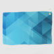 This golf towel is shown in a blue multi colour abstract art print.