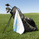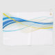 This golf towel is shown in a white colour with a blue and yellow colours artful swirl print.