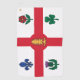 The flag of Montreal prominently displays a bold red cross dividing a white field into four quarters, each adorned with a floral emblem representing the city’s founding communities: the fleur-de-lis for the French, the rose for the English, the thistle for the Scots, and the shamrock for the Irish. At the centre sits a vivid red maple leaf symbolizing Canadian unity and multicultural pride. This meaningful design adds a unique and eye-catching flair to the towel, making it a standout addition to your golf gear.