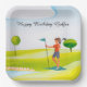 Golf woman is playing golf Birthday golfer Paper Plate