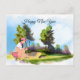 Golf woman is playing golf New Year Holiday Postcard