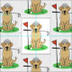 Golf Labrador Retriever - Cute Yellow Lab playing golf on the golf course, with a golf club in his mouth, a cap, and a golf ball. Copyright © Angi Laframboise. Funny golf-related dog breed cartoon gifts for dog lovers and golfers.