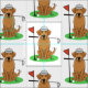 Golf Labrador Retriever - Cute Yellow Lab playing golf on the golf course, with a golf club in his mouth, a cap, and a golf ball. Copyright © Angi Laframboise. Funny golf-related dog breed cartoon gifts for dog lovers and golfers.