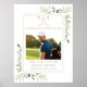 An elegant funeral memorial celebration of life sign featuring watercolor greenery, gold golf clubs and ball, and a photo of the loved one. Designed by Thisisnotme©