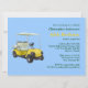 You can personalize all the text on this 40th golf themed birthday party invitation. You can change the text and number on the front and use this for a 40th, 60th, 70th or other birthday. The design features a bright yellow golf cart on the back and a golf ball made to look like the earth with all the golf equipment on it. Light and dark blue.