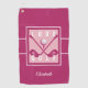 Golfer Golf Womens Modern Monogram Pro Pink White Golf Towel