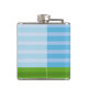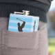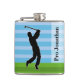 This colourful flask features the silhouette of a golfer in swing, over a green and blue striped background, representing the grass and sky. You can easily add your name or message, making this a fantastic gift item!