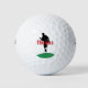 Golfer Silhouette On The Green custom golf balls. Black silhouette of a celebrating golfer with a golf club in his hand and on the green. Personalized with your name across the front in red. You can customize further by changing the font and colour in the design tool edit section when personalizing.