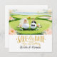 A charming and creative wedding invitation design for golf lovers. This illustration features a golf ball bride with a delicate veil and a groom golf ball with a bow tie, standing side by side on a beautifully trimmed putting green. Surrounded by soft floral accents and golf-themed details, this unique invitation captures the romance and personality of a couple who love the game. Perfect for whimsical, outdoor, or golf-themed weddings.