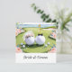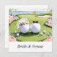 A charming and creative wedding invitation design for golf lovers. This illustration features a golf ball bride with a delicate veil and a groom golf ball with a bow tie, standing side by side on a beautifully trimmed putting green. Surrounded by soft floral accents and golf-themed details, this unique invitation captures the romance and personality of a couple who love the game. Perfect for whimsical, outdoor, or golf-themed weddings.