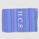 Personalized monogram golfer's towel has fine lines with an blue coloured background. HAmbyWhiteGlove