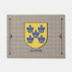 Spanish surname Gomez Historical Shield Floormat featuring five Fleur de Lis in blue over a gold field set on a cobblestone style background. The Spanish surname Gomez is thought to derive from the given name Gomes which is a loanword of the Visigoth word guma which means man.
