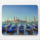 Painting of gondolas pier row anchored photo on Canal Grande with San Giorgio Maggiore church in the background, Venice, Italy. Parked gondolas on Piazza San Marco.