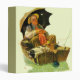 Artist: Norman Rockwell | Sleeping old man & dog in rowboat w/multiple fishing lines