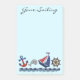 Graphic illustration of nautical pattern with sailboat, ship's wheel, anchor, and whale. Great for ocean lovers for any special occasion. Each 4”x6” pad comes with 50 sticky notes printed in full colour. You can add monogram, names, or message.