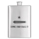 The product is a good size and came exactly as it was pictured. The lid is not attached to the flask, which could be dangerous on drunken nights... The print came out surprisingly well and looks very sharp. Would definitely recommend.
