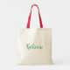 These bags were super cute (I purchased 3). The material is more of a canvas look & feel. The colour of the bag is slightly off white, but the letters look exactly as pictured. I took 3 photos in different lighting. Would recommend! I liked how there was an option to choose the font and colour of the name. The words are legible and the colours are exactly as pictured.