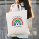 Good Day To Teach Teacher Gift Boho Rainbow Tote Bag features an adorable duo of rainbow in shades of pink, mustard, green and blue, along with fun type.