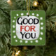 "Good For You" is a fun text design with a white accent shape surrounded by white whimsical textured dots.