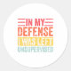Good Funny In My Defense I Was Left Unsupervised _ Classic Round Sticker