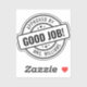 Celebrate student success with this vibrant “Good Job!” vinyl sticker featuring a bold, modern design. The text “Approved by” elegantly curves along the top, while your name arcs at the bottom, creating a professional yet fun layout. The bold “Good Job!” across the centre ensures the message stands out, making it perfect for rewarding students' achievements on assignments, projects, or classwork.