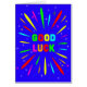 An explosive good luck wish! What a wonderful way to wish someone good luck. The words 'Good Luck' in bright colours with an explosion of bright colours and stars.