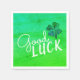 Good Luck Four Leaf Clover Shamrock St. Patrick`s day napkins. Modern abstract green pattern with trendy white typography quote Good luck and hand-drawn clover with four leaves for luck.