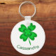 Good Luck Shamrock Four Leaf Clover Monogram Name Keychain