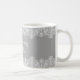 Our Good Morning Beautiful mug is decorated in a white lace design over grey.