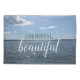 Turn this trendy pillow from side to side to remind your spouse or girlfriend (or yourself!) of their beauty twice a day! The sparkling water side reads "Good morning, beautiful" and the evening sunset side reads "Good night, beautiful". Perfect for coastal decor or any beach lover!