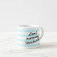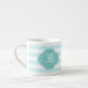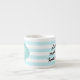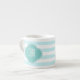 Good Morning Handsome Espresso mug. Aqua blue stripe pattern and Custom Monogram.