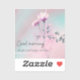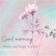 Sticker design in attractive colours is the phrase good morning and under it, the term bright morning and a new day next to the words flower in pink and pink and light purple dominates the design.