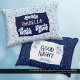 Good Night Name Navy Blue Floral Aesthetic Accent Pillow