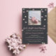 Good Night, Sweet Princess... Baby memorial card in darkest blue with pastel pink and yellow stars scattered around a photo of your child, a Shakespeare quote, and your text.