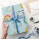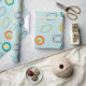 This wrapping paper has a mid-century modern design of ovals forming an atomic shell and small circle inside larger circles in orange, green, gold, light blue, turquoise, and red. If you like the design but prefer different colours, message me.