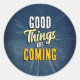 Featuring a bold and cheerful message — *"Good Things Are Coming"* — set against a starburst night-sky background, this design is all about positivity and good vibes. It's not just a quote — it's a vibe, a wink from the universe, and a little confetti cannon of hope. Say it, believe it, manifest it. 🎉✨