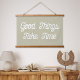 Good Things Take Time Light Sage Green Retro Script Canvas Flag Hanging Tapestry with a motivational quote for more positivity in your life.