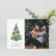 This humourous holiday card features a hand lettered illustration of a Christmas tree that says "good tidings and cheer and to hell with this year." It has space for a single photo as well as a short greeting and your name(s). The back has a colour coordinating stripe pattern.