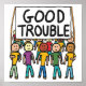 Good Trouble protest design shows a group of people marching under the banner "Good Trouble". About furthering justice especially in relation to civil rights.