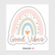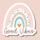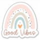 Imagine adding a touch of bohemian charm and positivity to your everyday life with a sticker featuring a rainbow design in muted colours and the uplifting phrase "Good Vibes." This sticker is not just a decoration but a statement piece that radiates positivity and creativity wherever you place it.