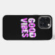 Bring the energy wherever you go with this bold and vibrant “GOOD VIBES” iPhone case. Featuring 3D-style lettering in neon purple with a cosmic background, this case is all about joy, fun, and attitude.