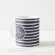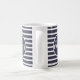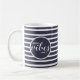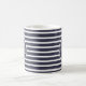 Begin your day with positive thoughts! Cute modern positivity design features "Good Vibes Only" motivational affirmation quote in white lettering on our stylish blue & white stripe pattern coffee mug. Design is visible for right and left-handed usage with the words visible from either side.
