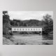 A photograph of Goodpasture Bridge spanning the McKenzie River near Vida, Oregon. Built in 1938 at a cost of $13,154, Goodpasture Bridge replaced a ferry at this site. The bridge was rehabilitated in 1987 at a cost of $750,000 and continues to carry vehicular traffic. At 165 feet long, it is the second-longest covered bridge in Oregon. Its impressive size, beautiful setting and distinctive architectural detailing make it one of the most-photographed covered bridges in the state.