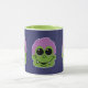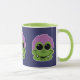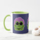 Adorable smiling goblin has green skin, funky purple hair, fangs and big sweety eyes. A fun gift for Halloween or every day.