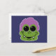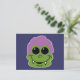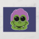 Adorable smiling goblin has green skin, funky purple hair, fangs and big sweety eyes. A fun gift for Halloween or every day.